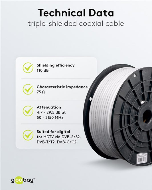 110 dB SAT-Koaxialkabel, 3x geschirmt, Cu-Innenleiter