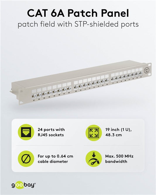 CAT 6A 19 Zoll (48,3 cm) Patch Panel, 24 Port, (1 HE)