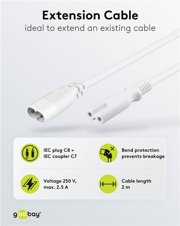 Verlängerungskabel C7/C8, 2 m, Weiß, (2*0,75 mm²)