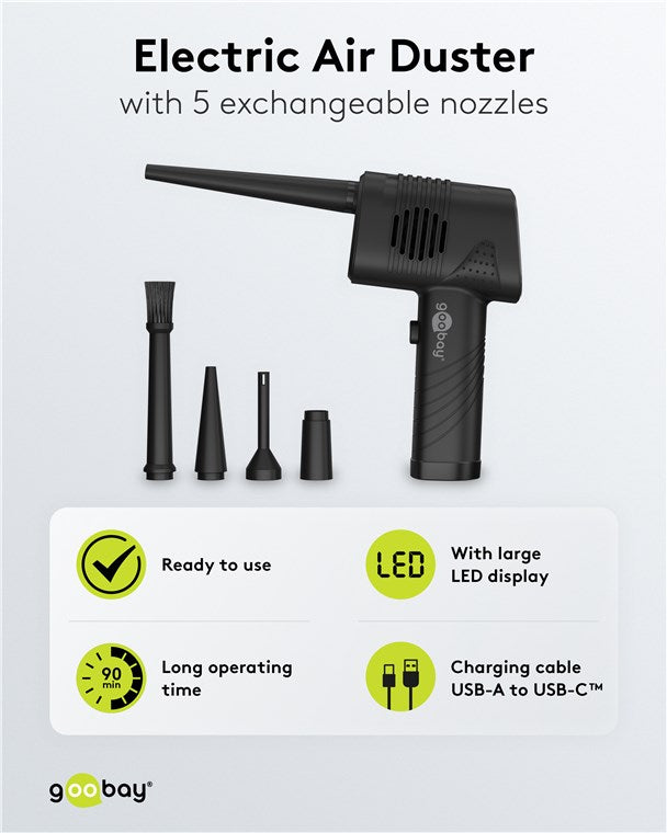 Das mobile Goobay-Staubgebläse ist die perfekte Reinigungshilfe im Haushalt und unterwegs. Ausgerüstet mit 3 Betriebsstufen und 5 Aufsätzen ist es für die verschiedensten Anwendungen geeignet - auch an schwer zugänglichen Stellen. Dank der wiederaufladbaren Akkus ist das Gebläse eine langlebige und umweltfreundliche Alternative zu Druckluft aus der Dose.