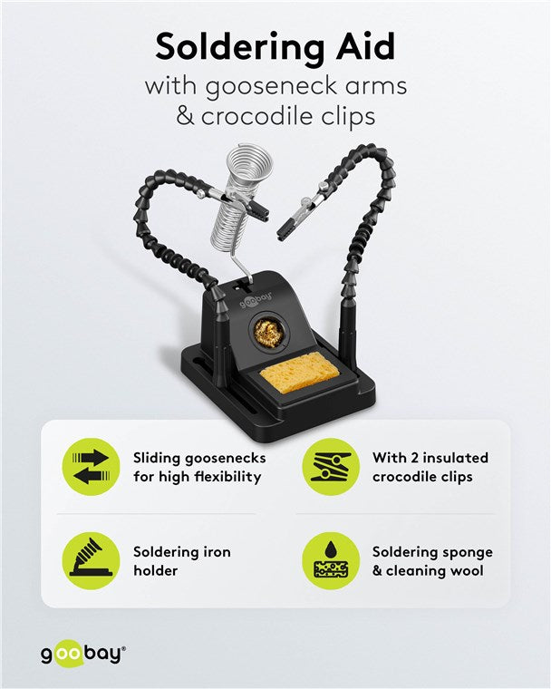 Die kompakte Löthilfe bietet die dritte, vierte und fünfte Hand, die beim Löten oft fehlen. Das einzigartige Design mit versetzbaren Schwanenhals-Armen und erhöhter Lötkolbenhalterung sorgt für maximale Benutzerfreundlichkeit. Einfach justieren, präzise arbeiten – für alle Profis und Bastler!