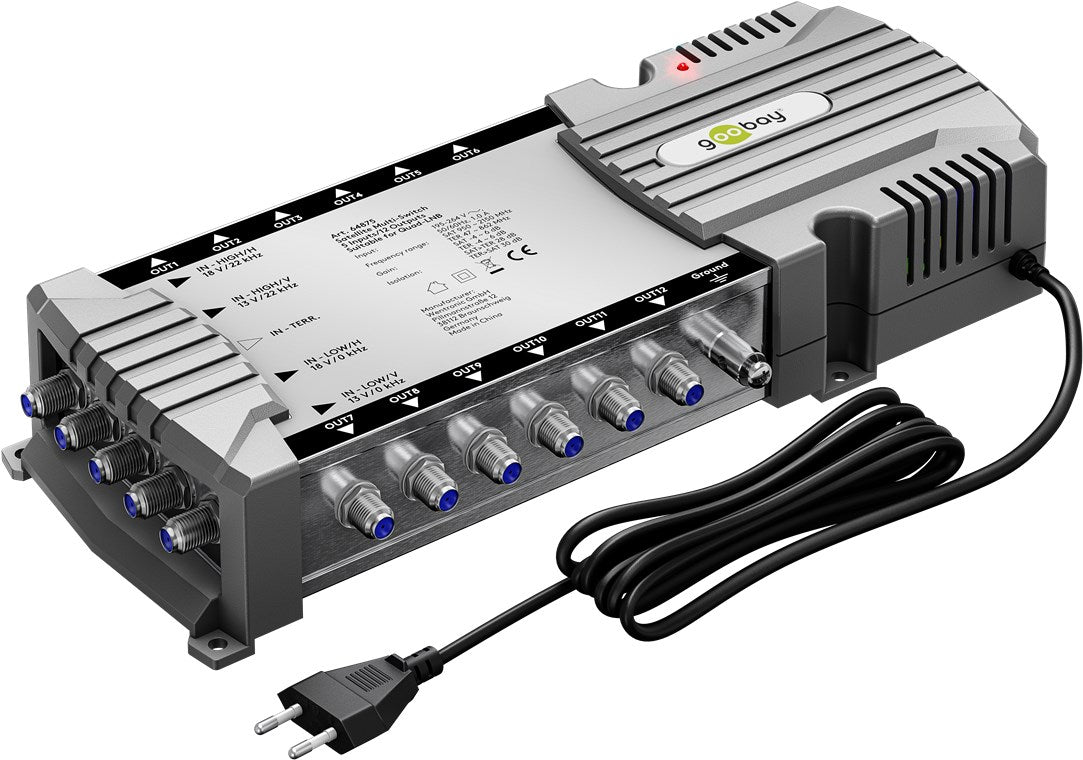 Der Multiswitch ist die komfortable Lösung, um mehrere Geräte für Fernseh- und Radioempfang im gleichen Haus an nur eine Satellitenschüssel anzuschließen. Der Switch sorgt dafür, dass jeder der 12 Teilnehmer ein individuelles Programm genießen kann - für maximale Flexibilität beim Fernsehempfang.