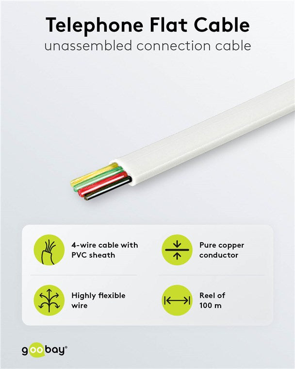 Unsere Telefonkabel übertragen Signale in maximaler Qualität und sorgen für eine stabile Verbindung. Hochwertige Innenleiter und eine robuste Kabelummantelung zeichnen unsere Verbindungskabel aus. Goobay hat immer das richtige Produkt für Ihre Anwendung. Einfach. Alles. Passend!