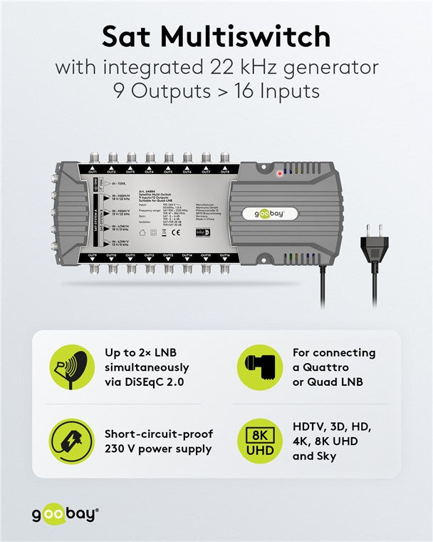Multiswitch, aynı evde televizyon ve radyo alımı için birden fazla cihazı tek bir uydu çanağına bağlamak için uygun bir çözümdür. Anahtar, televizyon alımında maksimum esneklik için 16 katılımcının her birinin ayrı bir programın keyfini çıkarmasını sağlar.