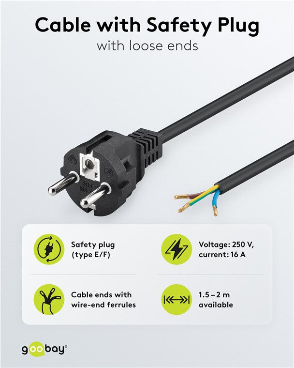Schutzkontaktkabel zum Konfektionieren, 1,5 m, Schwarz, (3*0,75 mm²)