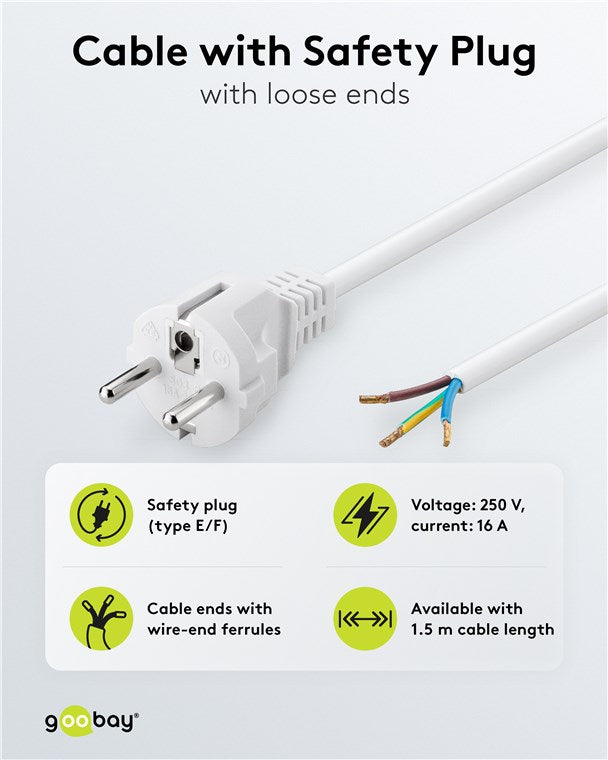 Schutzkontaktkabel zum Konfektionieren, 1,5 m, Weiß, (3*0,75 mm²)